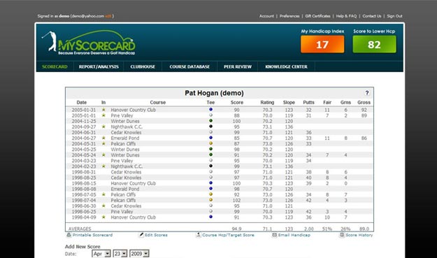 - Automatic calculation of your handicap (also called a Handicap Index)
