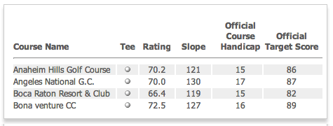 The MyScorecard system will calculate a Target Score for each course you will play, representing what you should shoot for on a good day.
